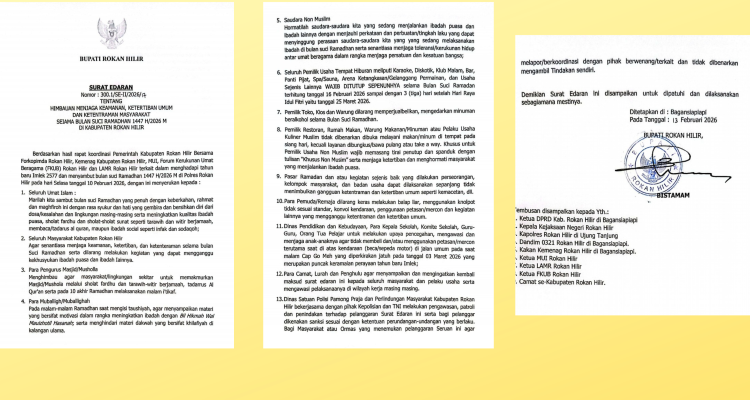 Bupati Rohil H. Bistaman Terbitkan Edaran Ramadhan 1447 H : Hiburan Malam Wajib Tutup! DAERAH, Kabupaten Rohil|Februari 15, 2026oleh admin Rokan Hilir – (suarapesisirrokan.com) Menyambut bulan suci Ramadhan 1447 H / 2026