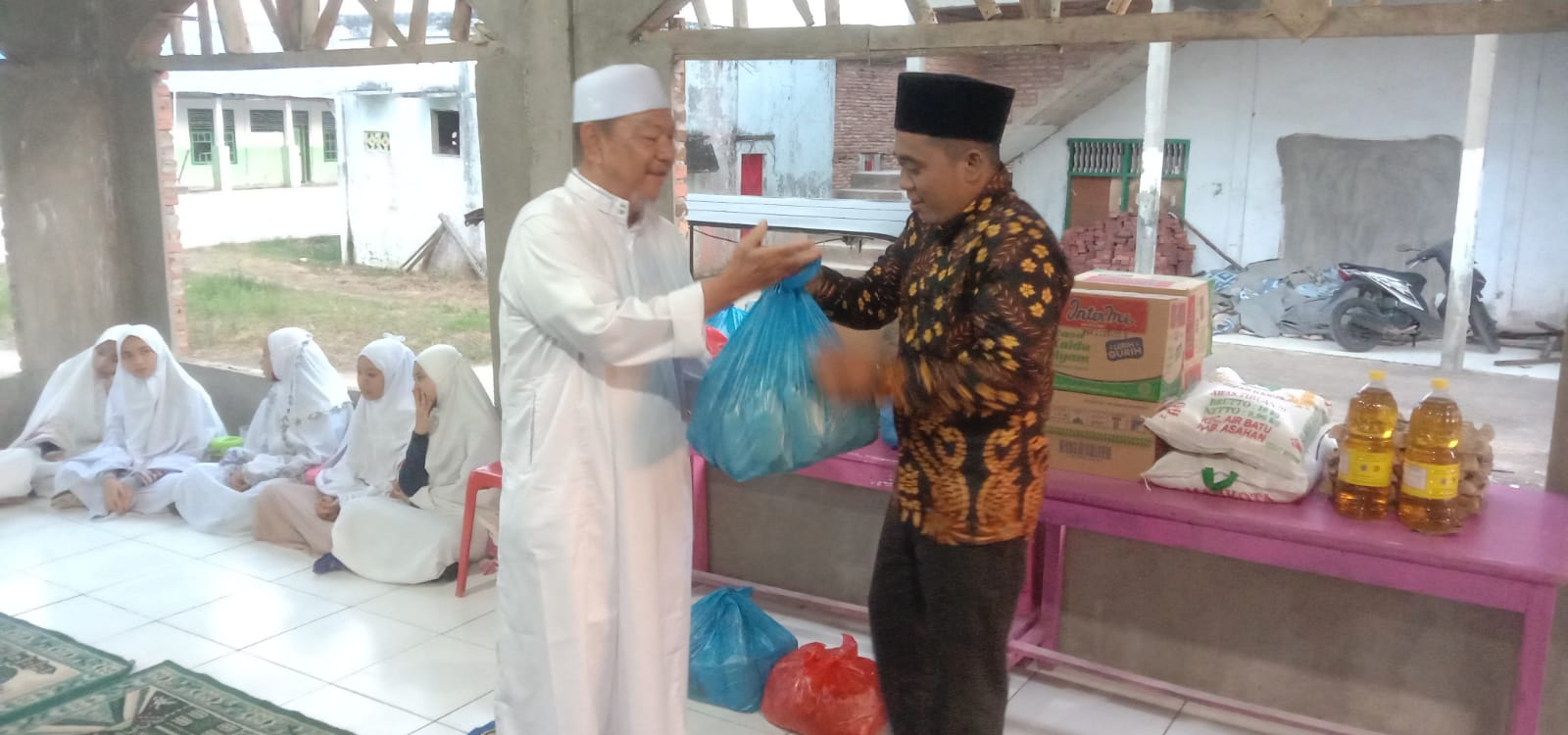 Penyerahan Paket sembako dilaksanakan secara simbolis oleh Alek Marzen orang kepercayaan Koperasi Brother kepada Kh. Syukur pimpinan Ponpes Roudhotul Jannah dan dilanjutkan berbuka bareng bersama puluhan santri dan santriwati di Pondopo Pondok Pesantren.