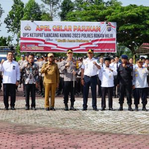 Rokan Hilir – (suarapesisirrokan.com) Polres Rokan Hilir (Rohil) laksanakan Apel Gelar Pasukan Ops Ketupat Lancang Kuning tahun 2023 dalam rangka pengamanan hari raya Idul Fitri 1444 Hijriyah, Senin (17/4/2023).