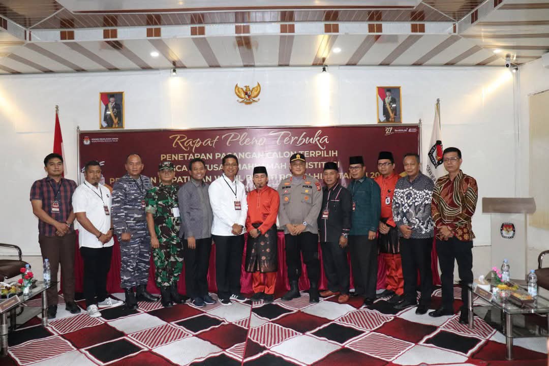 Rapat pleno KPU dalam rangka penetapan pasangan calon Bupati dan Wakil Bupati terpilih Kabupaten Rokan Hilir periode 2025-2030 ini dihadiri Wakil Bupati Rohil H.Sulaiman, Kapolres Rohil AKBP Isa Imam Syahroni dan Forkopimda Lainnya, Anggota KPU Provinsi Riau, Paslon Bupati dan Wakil Bupati Rohil terpilih H. Bistamam dan Jhoni Charles, Wakil Ketua DPRD Basiran Nur Effendi, Ketua MUI Rohil Suhaimi, Bawaslu Rohil serta perwakilan Partai Politik dan Tim pemenangan.