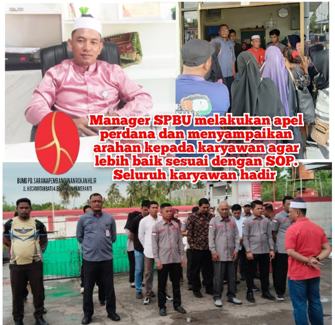 Rokan Hilir – (suarapesisirrokan.com) senin (16/06/2025). Manager SPBU Bagansiapiapi, Kh. Sandra SH MH, menyampaikan arahan kepada kariawan agar lebih baik sesuai dengan SOP. Seluruh karyawan hadir mematui segala arahan menjer SPBU. menyebutkan pihaknya saat ini telah melakukan pembenahan aspek karyawan dan mendengar langsung Keluhan konsumen dan kondisi SPBU saat ini pihaknya akan terus melakukan evaluasi. Kedepannya lebih baik lagi .
