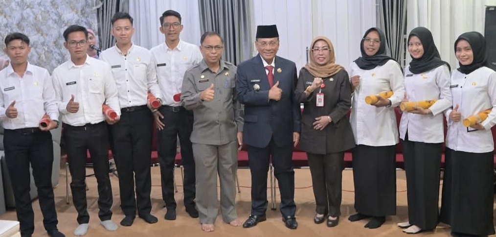 Bupati Rokan Hilir H. Bistamam menyerahkan Surat Keputusan (SK) Pegawai Pemerintah dengan Perjanjian Kerja (PPPK) kepada 1.046 tenaga honorer yang lulus tahap II tahun 2024, dimana pada prosesi di Mess Pemda Bagansiapiapi, Selasa (30/9/2025) malam, sebanyak 10 orang menerima SK secara simbolis yang dihadiri jajaran pejabat struktural, perwakilan instansi terkait.
