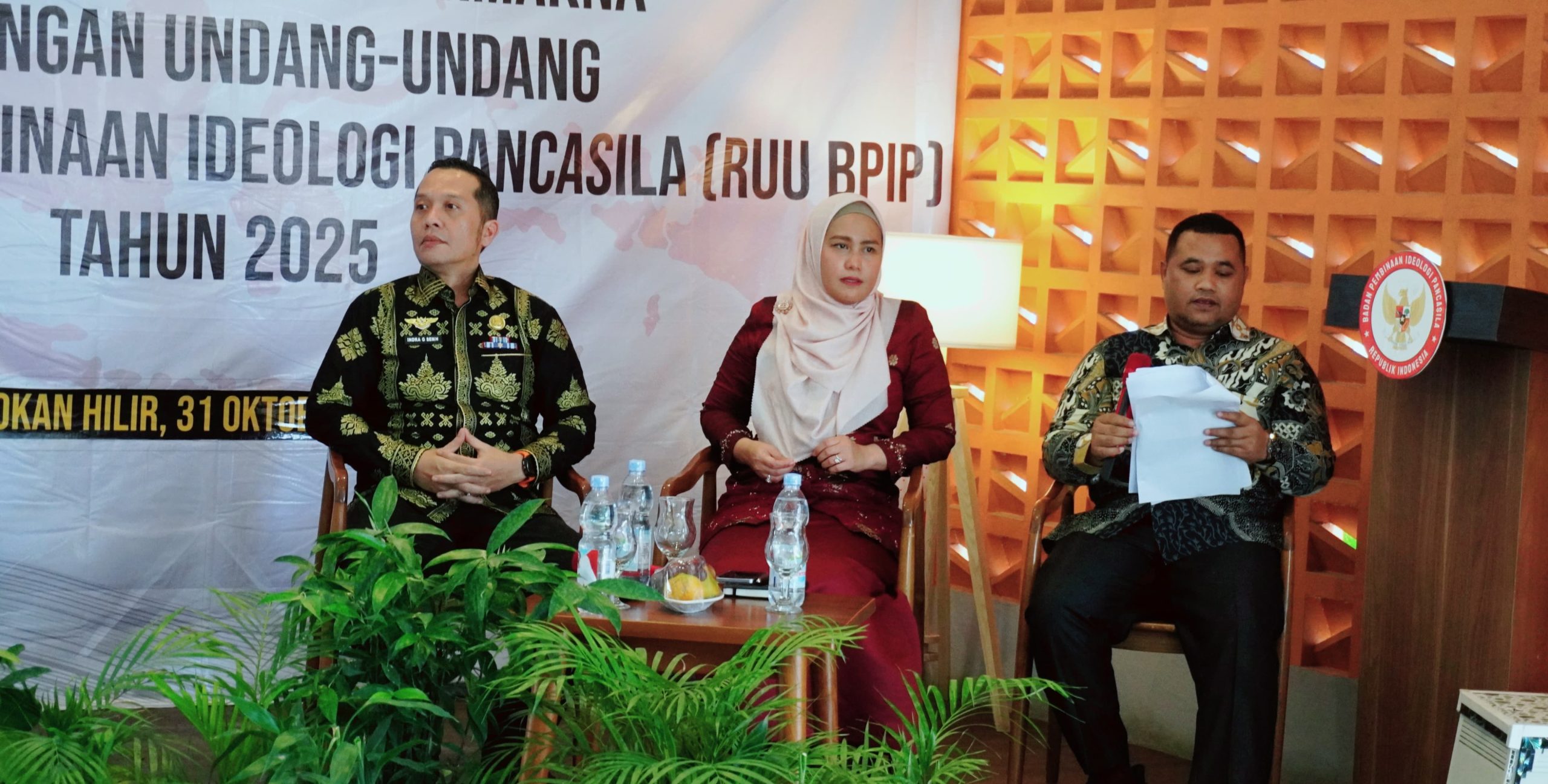 Rokan Hilir – (suarapesisirrokan.com) Badan Pembinaan Ideologi Pancasila (BPIP) Gandeng Kantor Kesatuan Bangsa dan Politik (Kesbangpol) Kabupaten Rokan Hilir menggelar sosialisasi mengenai Rancangan Undang-Undang (RUU) Badan Pembinaan Ideologi Pancasila (BPIP). Acara yang berlangsung di aula hotel Ujungtanjung pada Jumat, 31 Oktober 2025, ini dihadiri oleh Organisasi Kemasyarakatan Pemuda (OKP), Organisasi Masyarakat (Ormas) dan Organisasi Kemahasiswaan di Rokan Hilir.
