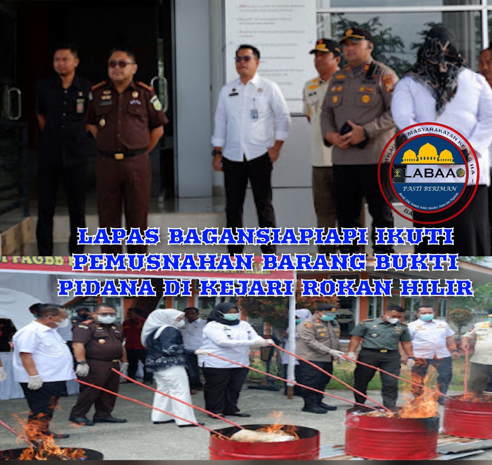 Bagansiapiapi – (suarapesisirrokan.com) Rabu, 26 November 2025.- Lembaga Pemasyarakatan Kelas IIA Bagansiapiapi turut berpartisipasi dalam kegiatan pemusnahan barang bukti tindak pidana yang telah berkekuatan hukum tetap (inkracht) di Kejaksaan Negeri Rokan Hilir, . Kegiatan ini merupakan bagian dari penegakan hukum yang transparan dan akuntabel serta menjadi langkah penting dalam mencegah penyalahgunaan barang bukti setelah proses peradilan selesai.