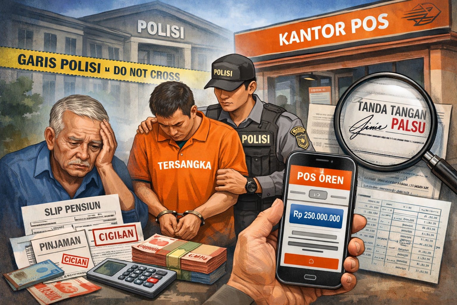 Rokan Hilir – (suarapesisirrokan.com) Seorang pensiunan Aparatur Sipil Negara (ASN) di Kabupaten Rokan Hilir melaporkan dugaan penyalahgunaan wewenang yang melibatkan oknum pegawai Kantor Pos ke pihak kepolisian. Laporan tersebut terkait pencairan pinjaman resmi yang dananya tidak pernah diterima korban, meski cicilan pinjaman tetap dipotong rutin dari uang pensiunnya setiap bulan.