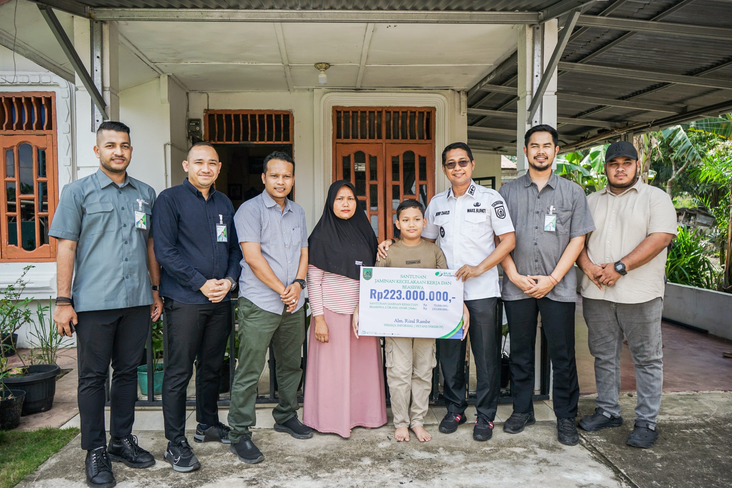 Santunan tersebut diterima langsung oleh istri almarhum selaku ahli waris. Selain santunan kematian, BPJS Ketenagakerjaan juga memberikan beasiswa pendidikan untuk kedua anak almarhum yang akan ditanggung hingga mereka menyelesaikan bangku perkuliahan.